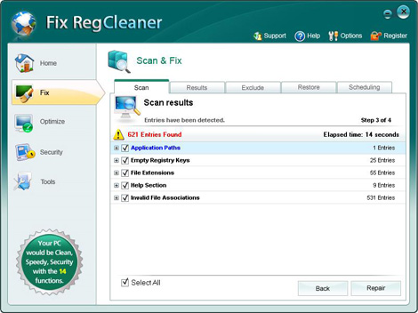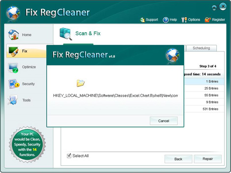 Note: The Fix RegCleaner will just fix registry errors on your computer and it will not infect any functions on Windows System!